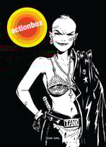 Every boxed tank will come with an unused Steve Dillon b/w Actionbox backing card, an "If This Tank's a Rockin' Then Don't Come a Knockin'" sticker, a mini certificate of authentication (signed by Alan), an orange Actionbox Club Member card, a photo trade card of Jamie Hewlett standing on the movie tank, a red and blue Tank Girl/Actionbox sticker, and a white 38mm Actionbox badge/button.