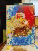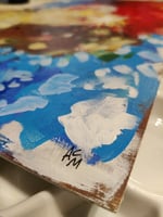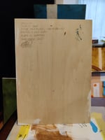 The artwork is acrylic paint on a basswood board panel (unmounted), sealed with cold wax. Size is A3 (30 x 42cm approx).